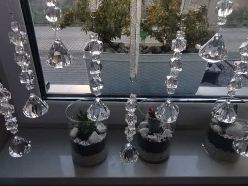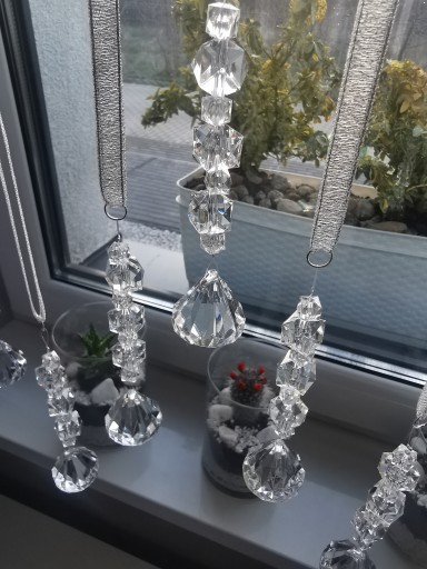 Zawieszka wykonana z koralików akrylowych o wielkości 16 i 10 mm.