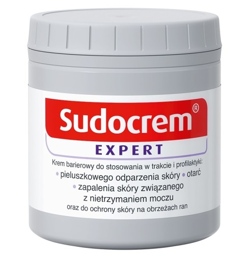 Sudocrem Expert Krem barierowy dla dzieci i dorosłych, do stosowania w trakcie i profilaktyki: pieluszkowego odparzenia skóry, otarć, zapalenia skóry związanego z nietrzymaniem moczu oraz do ochrony skóry na obrzeżach ran.