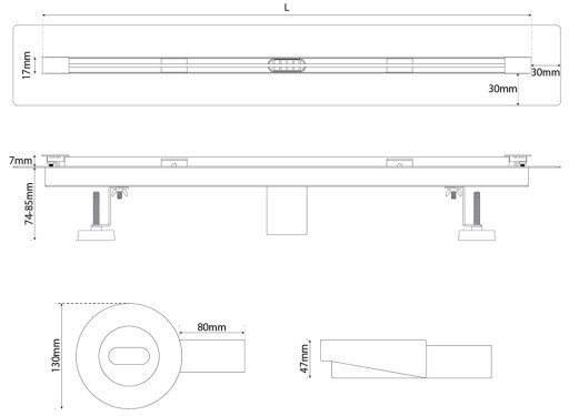- PROSTA INSTALACJA nóżki ułatwiające poziomowanie odpływu (regulacja wysokości pozwala na stabilny montaż do głębokości nawet 80 mm)