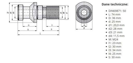 - Końcówka ściągająca zwana też grzybkiem jest elementem gwintowanymi, który umożliwia zamocowanie oprawki narzędziowej DIN69871 we wrzecionie obrabiarki CNC.
