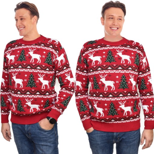 CZERWONY SWETER ŚWIĄTECZNY Z NORWESKIM WZOREM