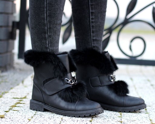 Czarne ciepłe trapery damskie na rzep z łańcuszkiem