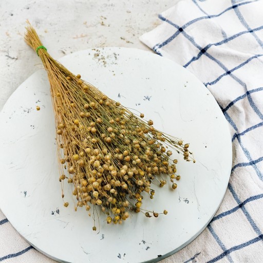 Len suszony - Naturalny to wyjątkowy, wszechstronny materiał dekoracyjny, który zachwyca swoją prostotą i naturalnym, organicznym urokiem. Jego charakterystyczny, delikatnie złoto-beżowy kolor sprawia, że doskonale komponuje się z wnętrzami w stylu boho, rustykalnym czy skandynawskim.