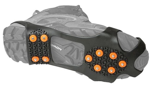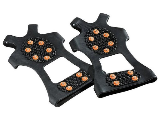 Raki Alpenheat, model Grips, do zastosowania na lodzie i śniegu, u dołu dziesięć wysokiej jakości kolców, które zapobiegają poślizgom na śliskiej nawierzchni, materiał: elastomer do niskich temperatur, waga: ok. 220 g.