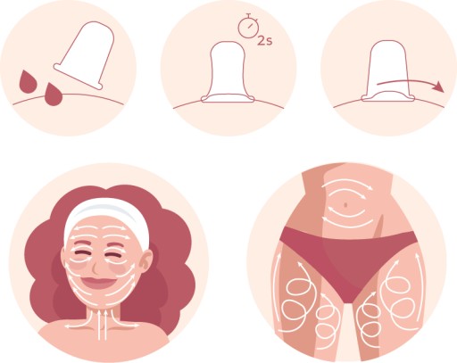 Przyssaną bańkę przesuwaj po skórze zgodnie z pokazanymi poniżej illustracjami.