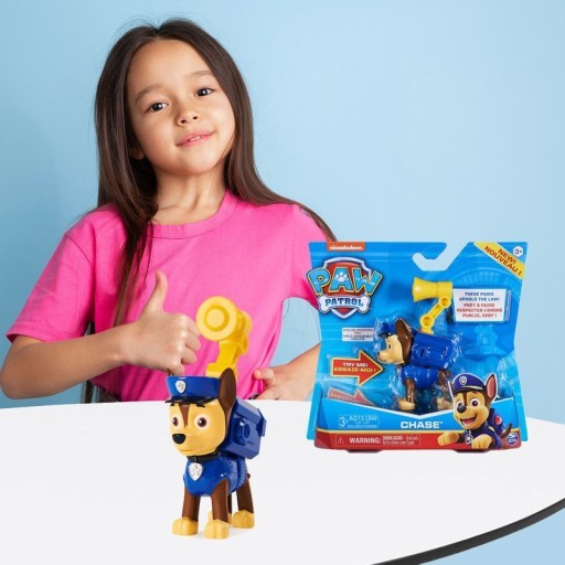 Figurka Chase'a o wysokości 10 cm z ruchomymi elementami i dźwiękiem. Po naciśnięciu odznaki piesek wydaje znane z filmu dźwięki.