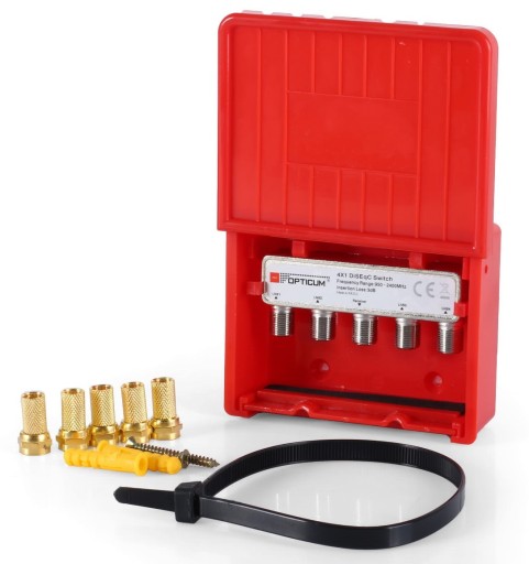 ZEWNĘTRZNY PRZEŁĄCZNIK DiSEqC 4/1 OPTICUM RED PRO + wtyki F