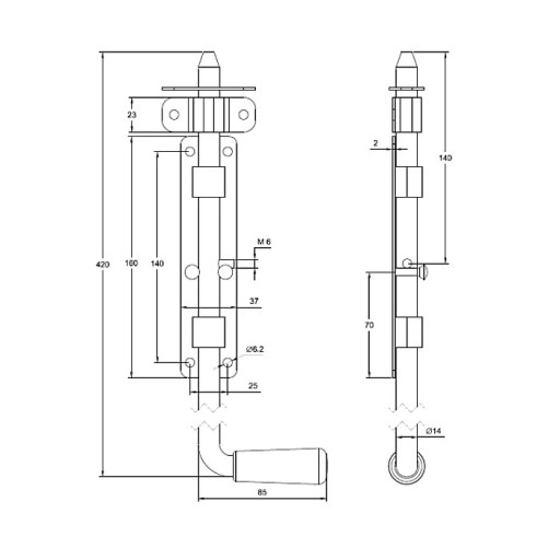RYGIEL ZAMKNIĘCIE ZASUWA DRZWI BRAMY 420 WĄSKA OC