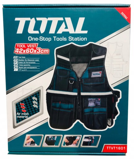 Kamizelka z przegródkami na narzędzia TOTAL jest lekka i wytrzymała, wykonana z poliestru. Dzieki niej masz wszystkie narzędzia pod ręką a twoje ręce pozostaja wolne.