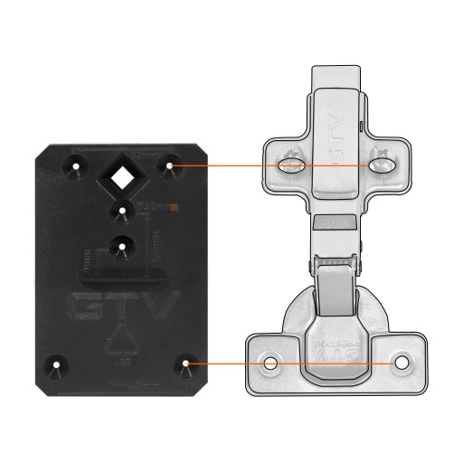 ZAWIAS NAKŁADANY GTV HYDRAULICZNY 110° FI 35MM + PROWADNIK H-0 CLIP-ON (ZESTAW) 10 SZTUK