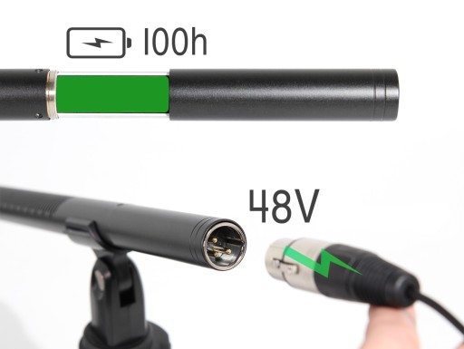 - Zasilanie: Phantom Power 48V/akumulator 1.5V AA