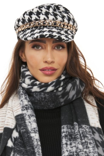 КЕПКА BAKER BOY, цепочка в ломаную клетку, черная
