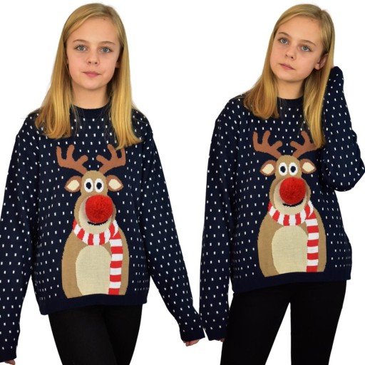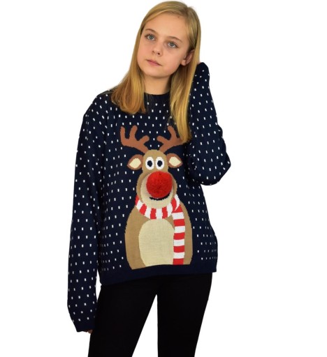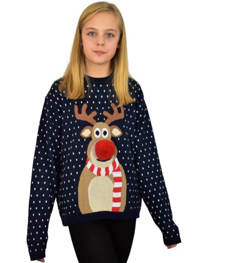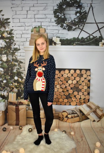 GRANATOWY DZIECIĘCY SWETER Z RENIFEREM NOS 3 D