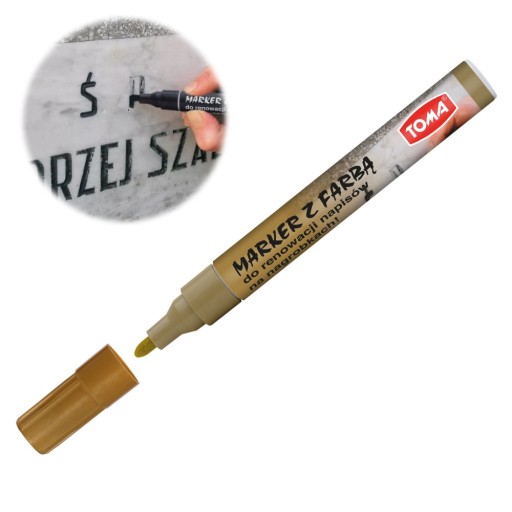SPECJALNY MARKER Z FARBĄ DO RENOWACJI NAPISÓW NA NAGROBKACH TOMA ZŁOTY - 1szt