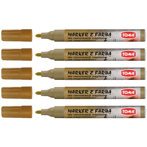 SPECJALNY MARKER Z FARBĄ DO RENOWACJI NAPISÓW NA NAGROBKACH TOMA ZŁOTY - 5szt