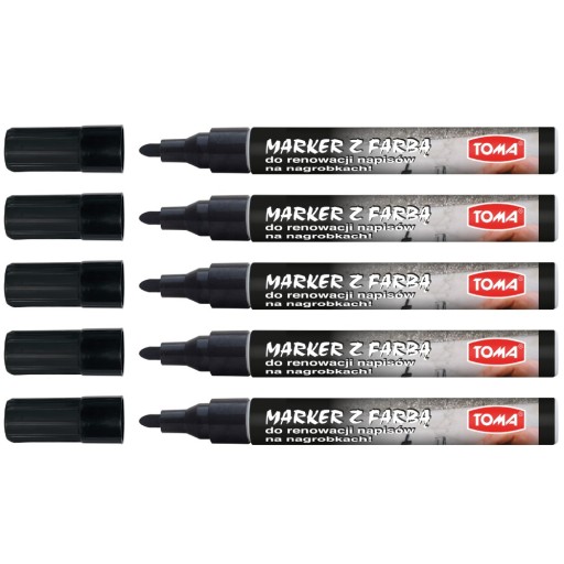 SPECJALNY MARKER Z FARBĄ DO RENOWACJI NAPISÓW NA NAGROBKACH TOMA CZARNY - 5szt