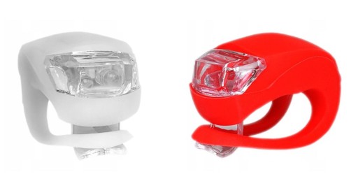 Zestaw dwóch lampek rowerowych: przód i tył. Lampki wykonane są z elastycznej silikonowej budowy, mnogie możliwości montażu. Produkt jest wodoodporny. Lampki zasilane są na baterie (w zestawie). Oświetlenie wykonane jest z dobrej jakości silikonu, dzięki czemu są wodoodporne oraz nie grozi im uszkodzenie po upadku na twardą powierzchnię. Lampki posiadają również specjalne silikonowe paski co ułatwia montaż na kierownicy, ramie roweru, plecaku lub kijach trekingowych.
