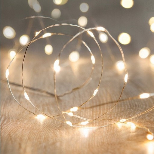 - Lampki na trwałych miedzianych przewodach w kolorze srebrnym