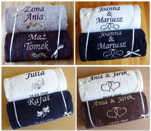 Ta aukcja i cena dotyczą kompletu 2 szt. dużych ręczników kąpielowych w rozmiarze 70x140 cm z Twoim indywidualnym haftem w postaci: