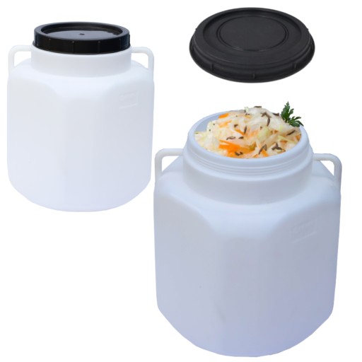 Produkt został zaopatrzony w pokrywkę, która po zakręceniu zapewnia odpowiednie warunki do prawidłowego przebiegu procesu kiszenia warzyw.