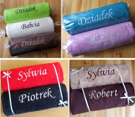 Ta aukcja i cena dotyczą kompletu 2 szt. dużych ręczników kąpielowych 70x140 cm z Twoim haftem w postaci imienia lub dowolnego 1 SŁOWA (bez grafiki).