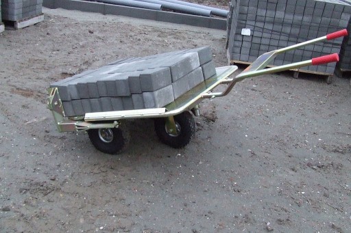 Wózek brukarski VTK-V-SR/N jest niezbędnym elementem na budowie, gdzie konieczne jest przenoszenie kostki brukowej z palet na miejsce położenia.