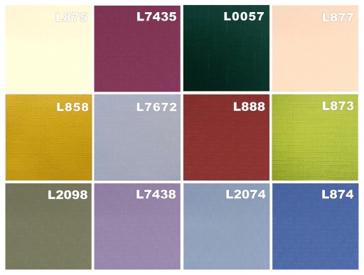 len 858 żółty; len 7672 jasny szary; len 0888 bordowy; len 873 jasny zielony;
