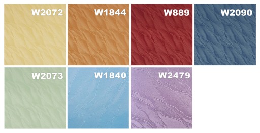 woda 2072 żółty; woda 1844 pomarańczowy; woda 0889 bordowy; woda 2090 ciemny niebieski; woda 2073 jasny zielony; woda 1840 jasny niebieski, woda 2479 fioletowy;