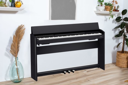 Smukła nowoczesna obudowa ułatwia ustawienie pianina w mieszkaniu.