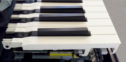 Powierzchnia klawiszy z mikrostrukturą kości słoniowej i drewna hebanowego gwarantuję lepsze ich wyczucie i zapobiega ślizganiu się nawet spoconych palców.