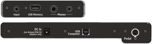 Gniazda USB dla pendriva i dla komputera pozwalają wykorzystać pianino jako klawiature sterującą MIDI oraz nagrywać/odtwarzać dźwięk bezpośrednio na pendrivie w formacie Standard MIDI Files lub Audio File (WAV, 44.1 kHz, 16-bit linear format).