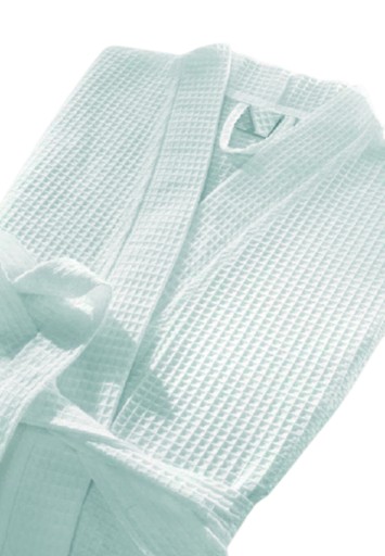 Szlafrok hotelowy GOFER wykonany został z wysokiej jakości gofrowanej tkaniny, która składa się ze 100% bawełny. Posiada gramaturę 280 g/m2, dlatego jest zdecydowanie lżejszy i cieńszy od tradycyjnych szlafroków frotte. Jego struktura z wyglądu przypomina wafla czyli drobną, tłoczoną kratkę. Szczególnie istotny jest fakt, iż jego naturalny skład sprawia, że skóra pod nim może swobodnie oddychać.