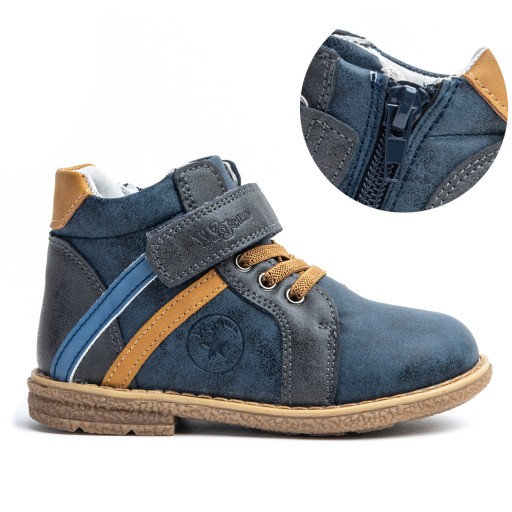 -wykonane z wysokiej jakości skóry ekologicznej w modnym połączęniu granatu i brązu