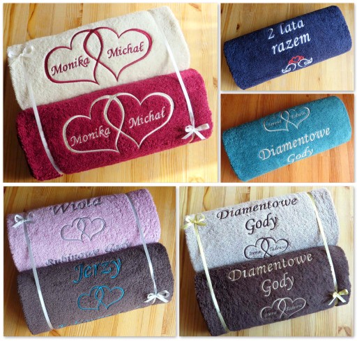 Ta aukcja i cena dotyczą kompletu 2 szt. dużych ręczników kąpielowych w rozmiarze 70x140 cm z Twoim indywidualnym haftem w postaci: