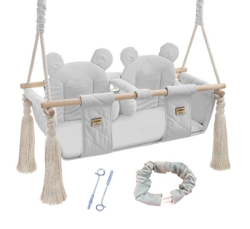 ДОМАШНИЕ КАЧЕЛИ BABYSTEPS TWINS, СЕРЫЕ, С ЛЕНТАМИ И ВЕРЕВОЧНЫМИ КРЮЧКАМИ 1,75 М
