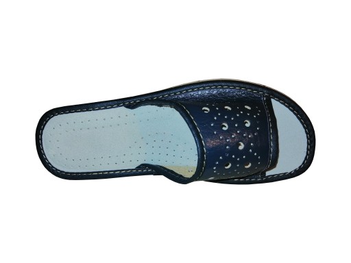 Pantofle posiadają wkładkę ortopedyczną ze skóry naturalnej, która zapewnia prawidłowe ułożenie stopy.