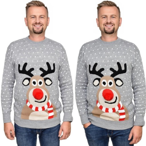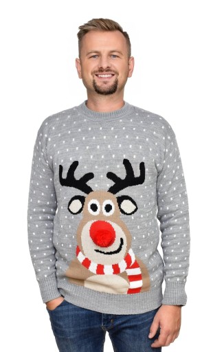 SZARY SWETER ŚWIĄTECZNY Z RENIFEREM NOS 3D