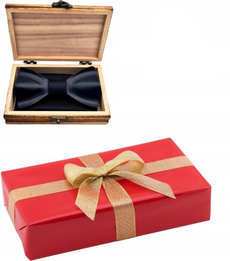 MUCHA DREWNIANA CZARNA DO KOSZULI MUSZKA POSZETKA ZESTAW PREZENT DLA NIEGO