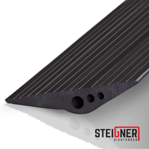 Trwały materiał – Próg został wykonany z tworzywa EPDM, które jest odporne na warunki atmosferyczne, działanie temperatur. Nie starzeje się i nie kruszy.