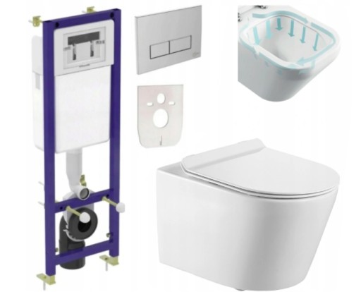 Miska wc Rimless + deska wolnoopadająca + stelaż + przycisk + mata