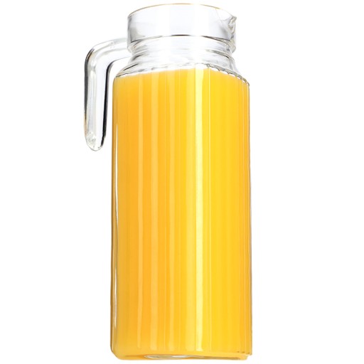 Dzbanek posiada grube dno i jest dość masywny, więc sprawdza się świetnie nie tylko podczas obiadu w domowym zaciszu, lecz także podczas przyjęcia na wolnym powietrzu czy grillu. Produkt jest wykonany z wytrzymałego szkła, które jest odporne na uszkodzenia i wstrząsy, co sprawia, że napoje w środku są zabezpieczone. Dodatkową ochronę zapewnia wygodny uchwyt, który dobrze dopasowuje się do dłoni i umożliwia komfortowe nalewanie soków, wody, lemoniady, napojów gazowanych.