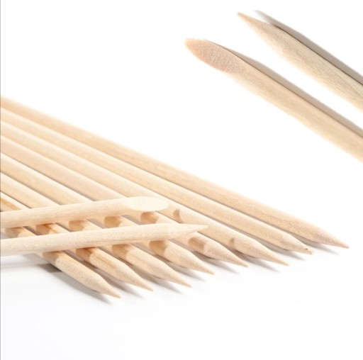 Wykonane z drewna pomarańczowego - niezwykle twarde drewno pomarańczy pozwala na długotrwałą prace. Patyczki z łatwością pomagają w odsuwaniu skórek przy paznokciach u rąk i stóp.