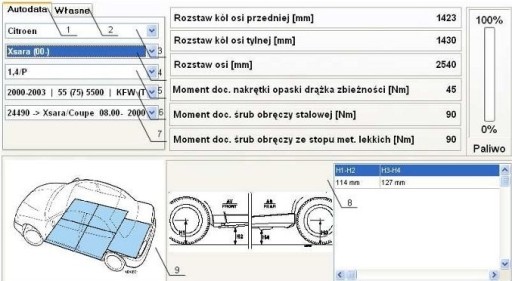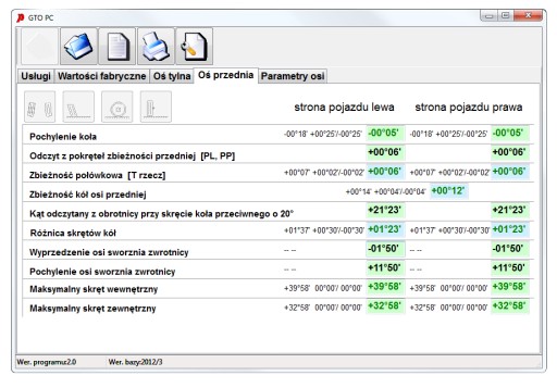 Program GTO PC 2023/24 z bazą danych do geometrii kół i osi pojazdów.