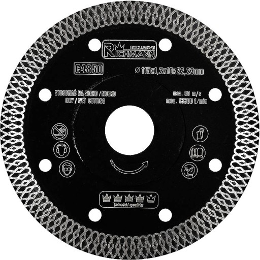☇ Specyficzny profil obrzeża diamentowego pozwala na cięcie z dużą prędkością najtwardszych materiałów bez uszczerbku dla jakości wykończenia