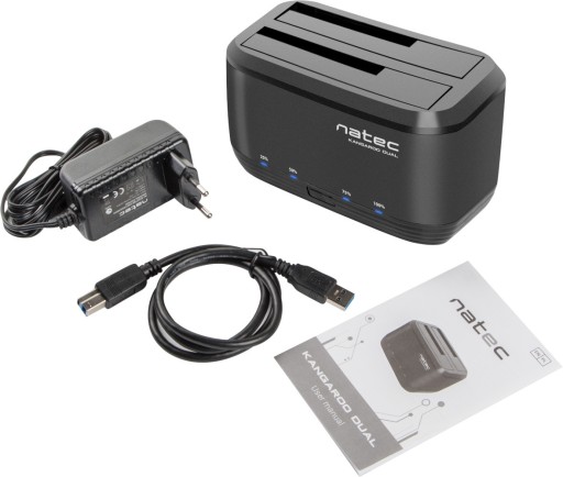 Dzięki dwóm kieszeniom Natec Kangaroo Dual umożliwia również klonowanie dysków bez konieczności podłączania stacji do komputera.Stan transferu danych wskazują diody LED umieszczone na urządzeniu