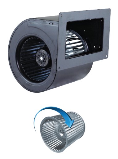 - Wirnik zgrzewany z blachy stalowej ocynkowanej, z łopatkami pochylonymi do przodu,