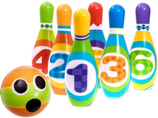 - 6 sztuk kolorowych ponumerowanych kręgli,