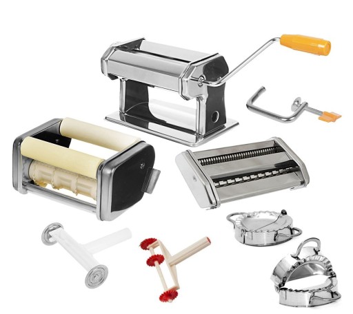 W komplecie znajduje się WYKROJNIK DO MAKRONÓW oraz MASZYNKA DO PIEROŻKÓW RAVIOLI.