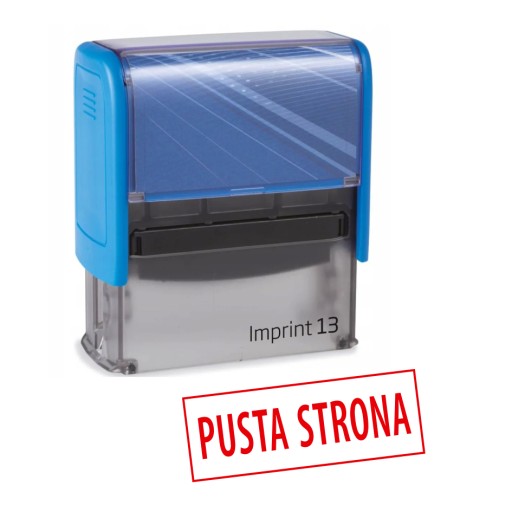 Pieczątka o treści PUSTA STRONA stosowana w celu oznaczenia pustej strony w dokumentach, np. aktach notarialnych.