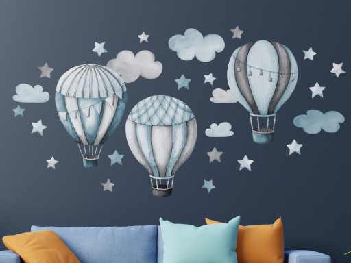 Naklejki Ścienne Niebieskie Balony dla dzieci - zamień pokój dziecka w prawdziwą bajkę dzięki ręcznie malowanym balonom i gwiazdkom!